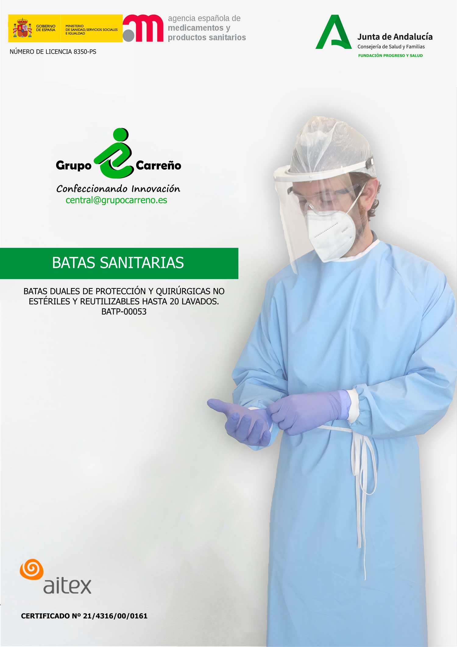 Nueva Bata Protectora impermeable lavable y termosellada, especialmente diseñada para profesionales sanitarios y ayudar a su protección frente al COVID-19. TALLA ÚNICA