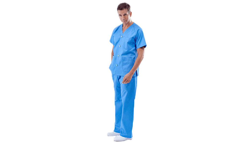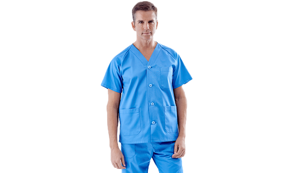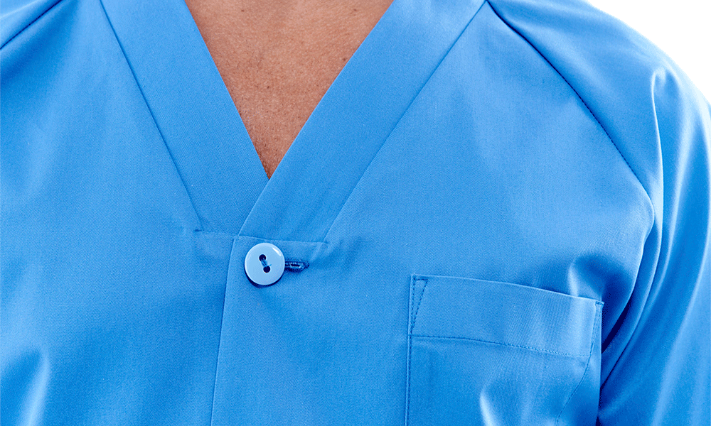 Home » Productos » PIJAMA SANITARIO CELESTE CUELLO PICO CON BOTONES