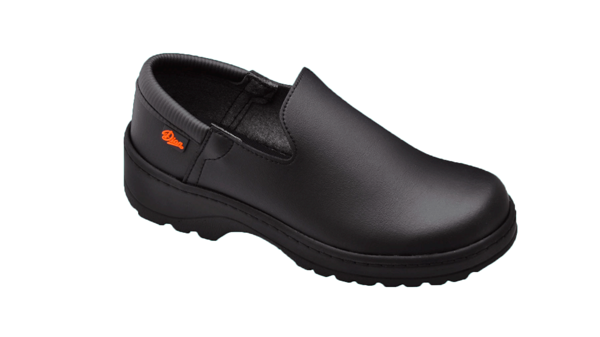 Zapato antideslizante de gran coeficiente en seco y húmedo con resaltes acanalados en la suela para facilitar la evacuación de líquidos evitando el deslizamiento en suelos mojados.